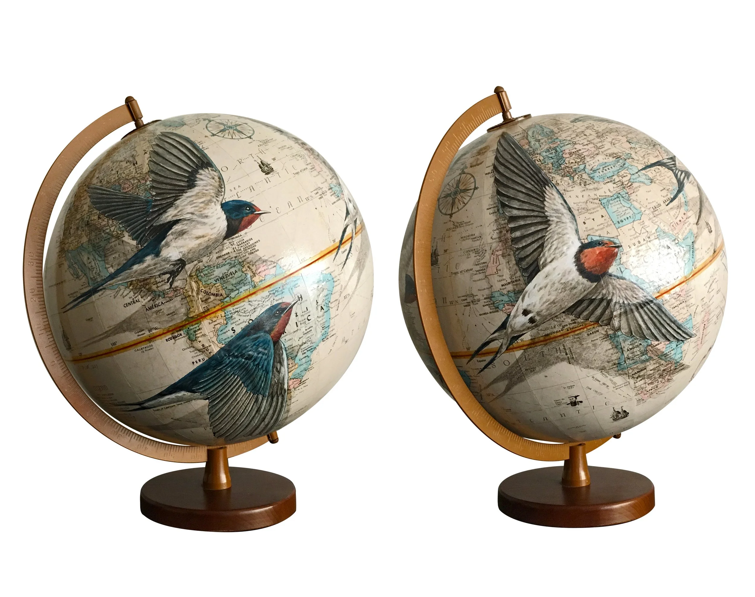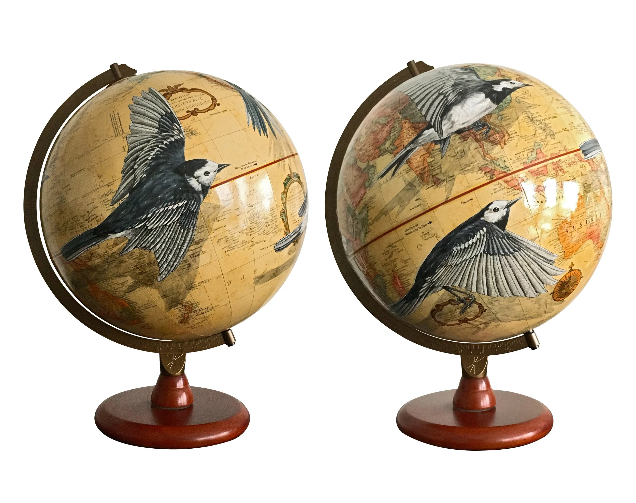 Acrylique et encre de Chine sur mapemonde ancienne • H40cm x L30 cm environ