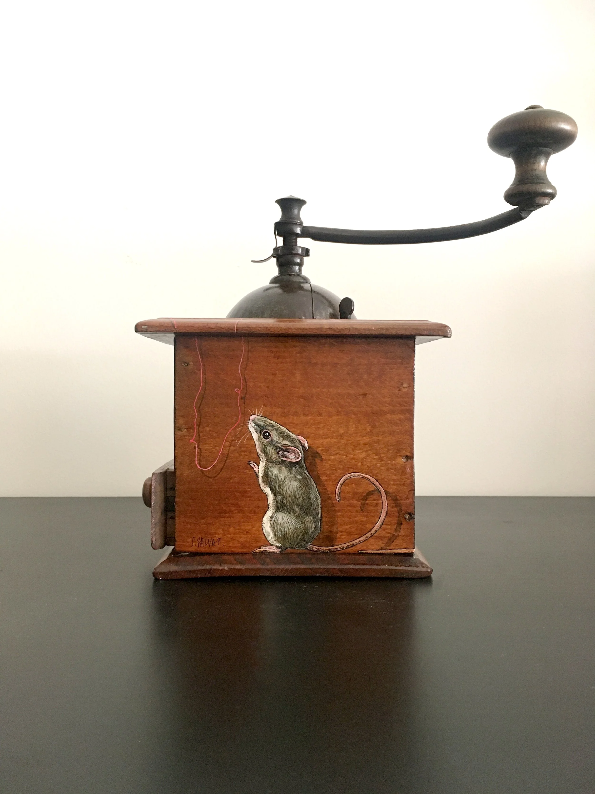 Acrylique et encre de Chine sur ancien téléphone à manivelle authentique