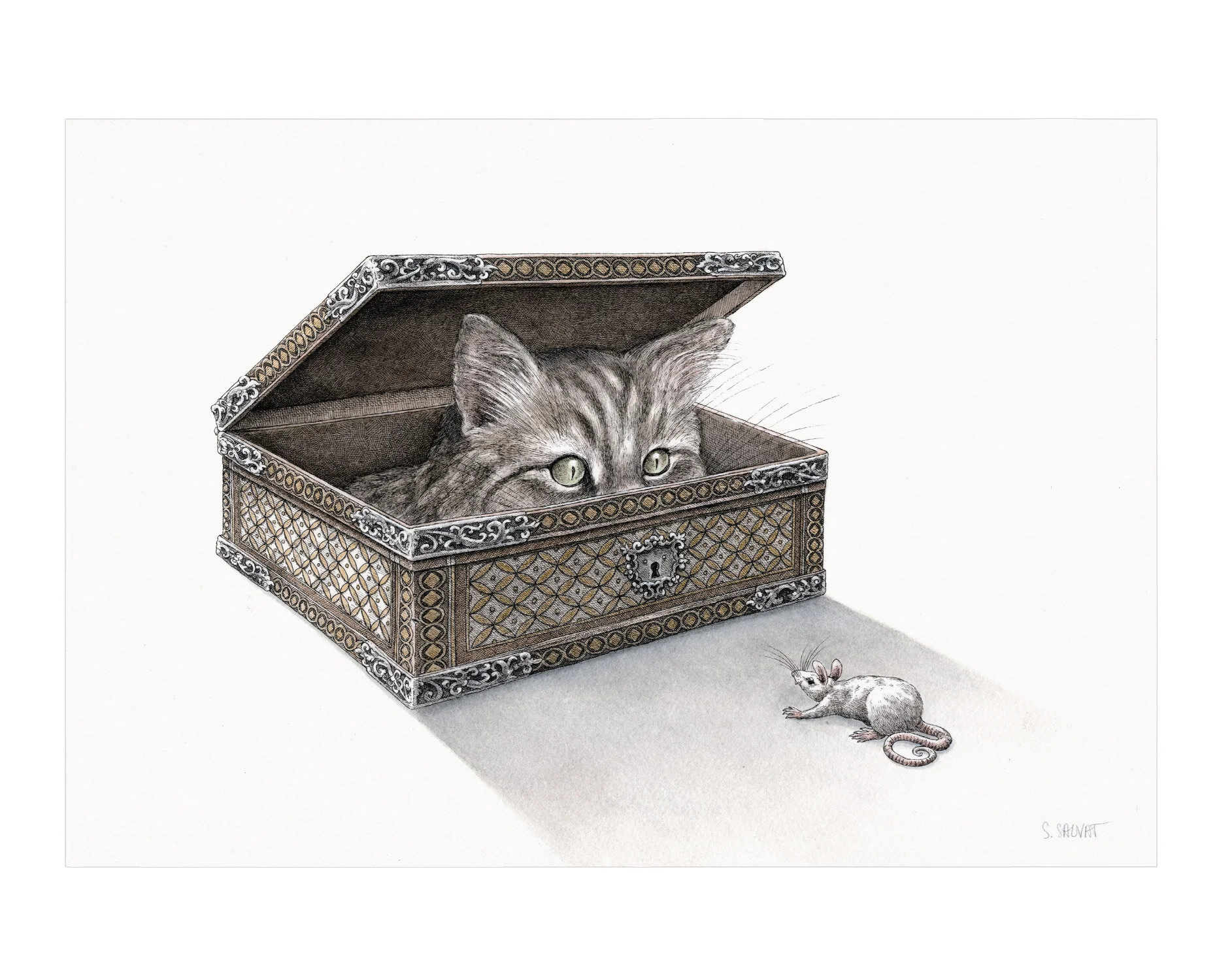 I decided to make something inspired by medieval representation and mix the figures of various animal families. Each card where drawn with Rotring and China ink, line by line.